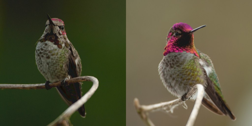 For the first two years that Anna’s hummingbirds were visiting my home, all of the birds coming to my feeders were females.