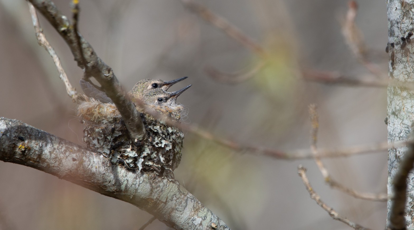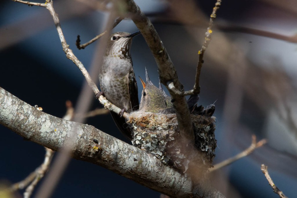 Part of the reason that Anna’s hummingbirds have been so successful at expanding their range (from northern Mexico and Southern California, now all the way up to British Columbia, Canada, and Alaska) is because they are very good at raising babies. These hummingbirds have been known to start up to five nests per year.